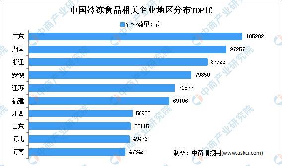 企查查数据显示,广东省冷冻食品企业数量最多,拥有10.5万家相关企业,***于全国其他省份。